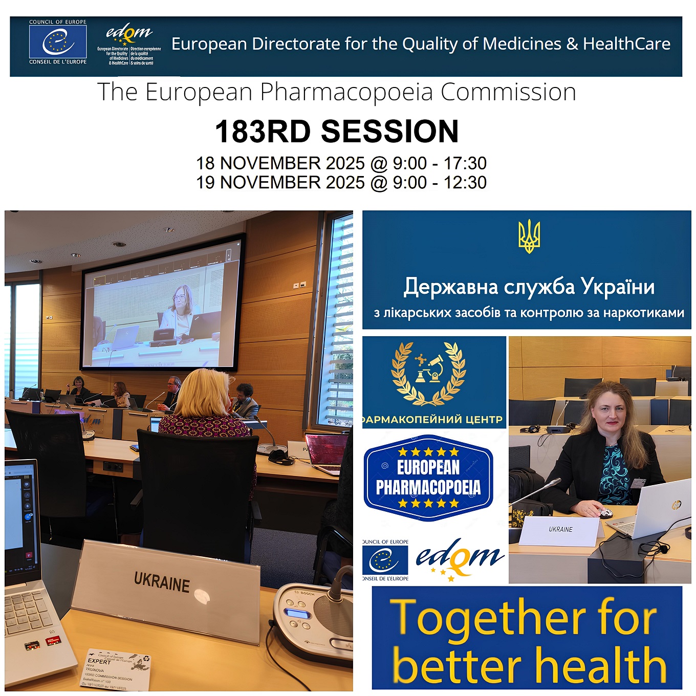 18-19 листопада відбулося 183 засідання Європейської комісії з фармакопеї. До засідання у гібридному режимі долучилась і українська делегація.